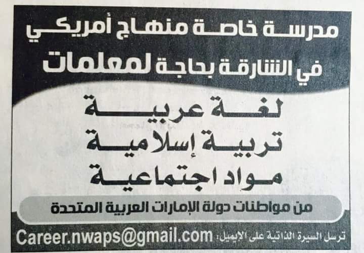 مطلوب معلمين لغة عربية وتربية اسلامية ومواد اجتماعية للعمل فى مدرسة بامارة الشارقة وظائف العرب